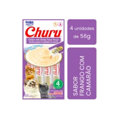 Churu é um purê extremamente palatável feito com frango de qualidade humana e aroma natural de camarão, apresentado em tubos fáceis de servir. A alta umidade (91%) ajuda a manter o gato hidratado, enquanto o baixíssimo valor calórico (≈ 6 kcal por tubo) permite premiar diariamente sem comprometer o peso. Não contém grãos, glúten, corantes nem conservantes artificiais, sendo indicado para gatos de todas as idades.